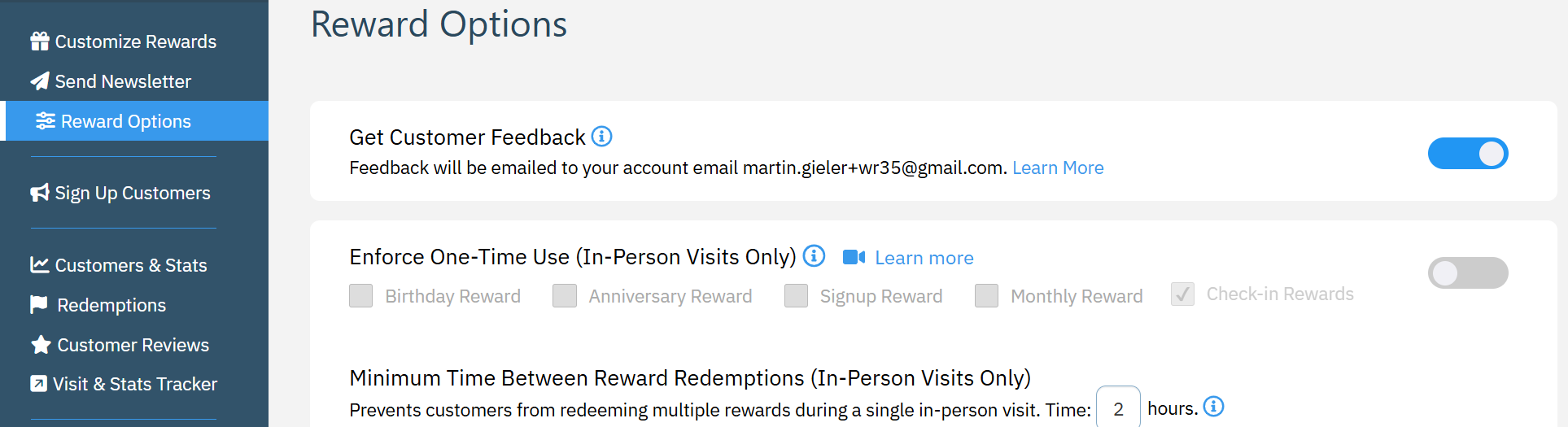 The feedback feature turns your rewards into a simple and effective “pulse check” on your business.
