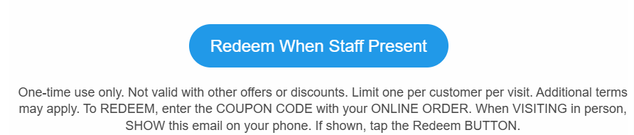 f you use Enforce One-Time Use, reward emails display a Redeem button instead.
