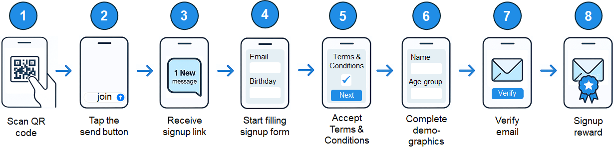 Once set up, SMS Signup automatically captures both phone number and email, increasing engagement and reward redemption rates.