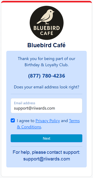 Once the email is verified, the customer immediately receives their signup reward (if your business offers one).