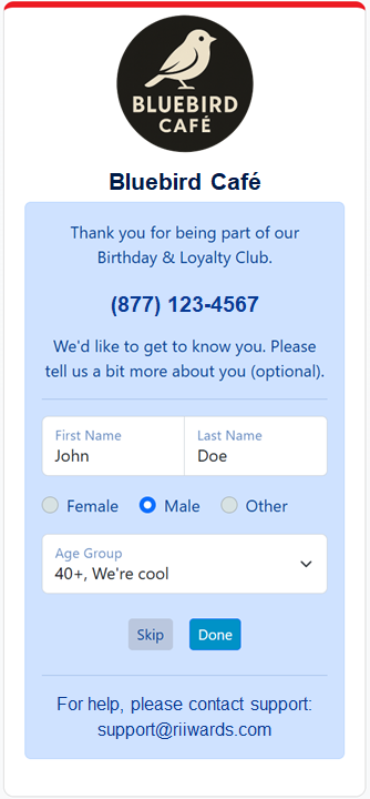 SMS Signup allows customers to join your Birthday Club quickly by sending a text message — perfect for walk-ins, restaurants, cafés, salons, and other busy brick-and-mortar locations. It’s fast, convenient, and works on every mobile device.